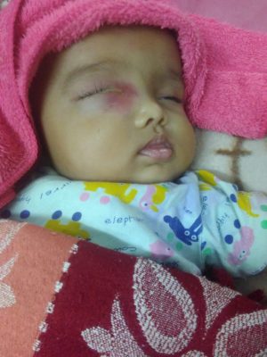 Four months and two surgeries later to drain water from Lydia’s brain, the baby girl was still in ICU, this time with a boil between her eye and her nose–caused by the surgeries. Finally the eye infection seemed to be abated and there was hope Lydia could go home for a while.